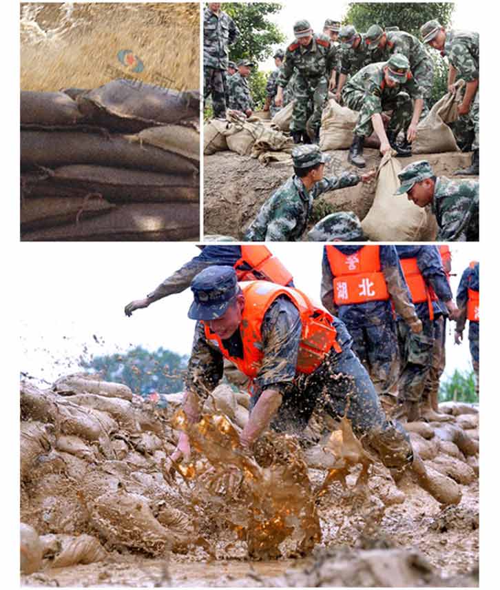采用以水治水的新理念:在防汛搶險緊急時刻無處尋找砂石土料,可以將吸水膨脹袋放入水中,3分鐘可迅速膨脹到20-25公斤,代替人工裝沙填土的防汛沙袋時代,也可以直接將吸水膨脹袋投放到管涌口,快速封堵堤壩管涌,廣泛用于防洪搶險,堤壩管涌,河堤堵漏,堤防漏洞、漫溢搶護(hù),防洪堤防的臨時性加高,臨時性防水圍城的構(gòu)筑,水庫,江河大堤滲水滑坡,護(hù)坡防沖,工程截流,暗溝和暗洞的堵塞。用于庫房,庭院,溝塘,被淹耕地排水;用于容易淹水的工廠,隧道,地下停車場,地鐵等領(lǐng)域作為防落水的使用;用于市政設(shè)施、道路施工,工地橋梁建設(shè),競賽場地等積水處吸水去水。是我國各地水利,水務(wù),防汛辦,防汛物資儲備及市政排水,和城市易澇區(qū)必備的應(yīng)急防汛儲備物資。